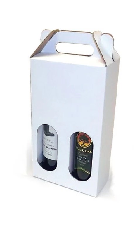 Cutie carton albit pentru doua sticle vin. Dimensiune H/L/l (cm) - 31/17/8,5.