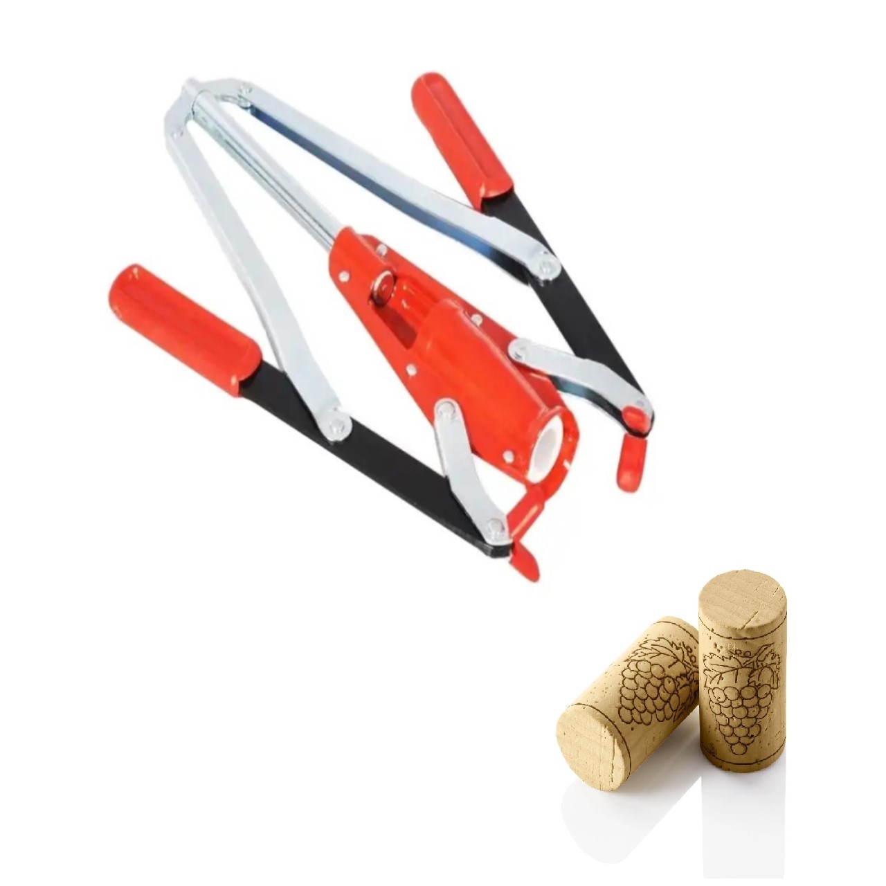 Dispozitiv manual de introdus dopuri pluta prin actionarea a doua manere.
